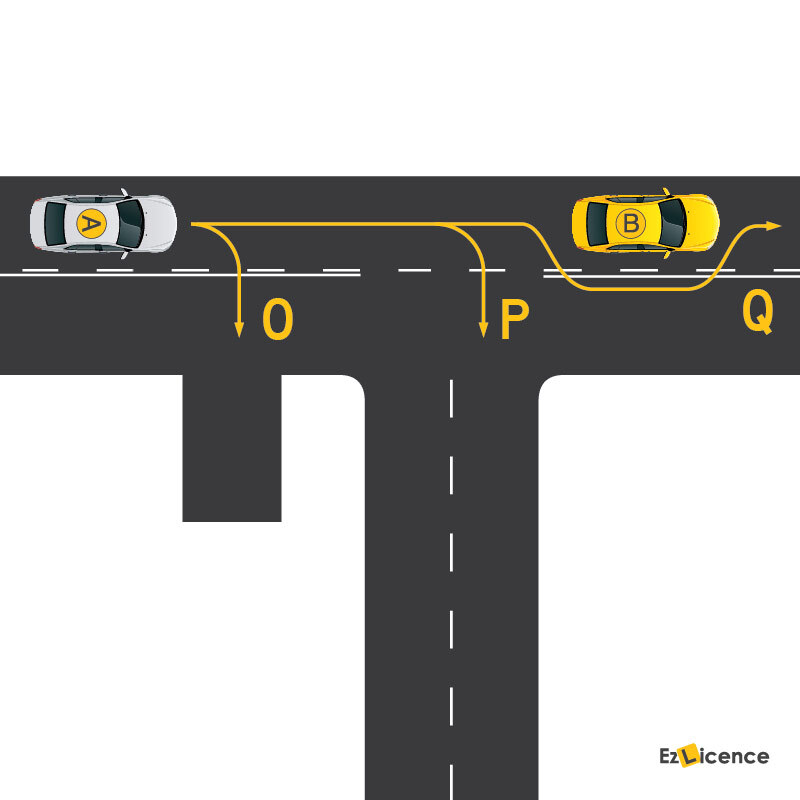 - Which movement shown in the diagram can legally be made by the driver of Vehicle A? -> 53.2% incorrect response rate