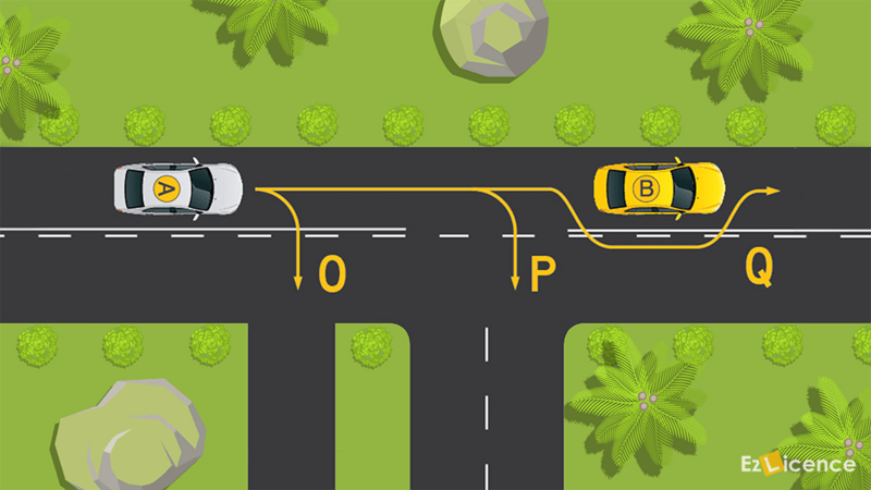 - Which movements shown in the diagram can legally be made by the driver of the car marked "A"? -> 43% incorrect response rate