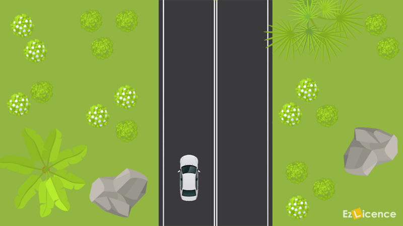 - Is a vehicle allowed to cross over a double unbroken white line (as shown in the diagram)? -> 56.4% incorrect response rate