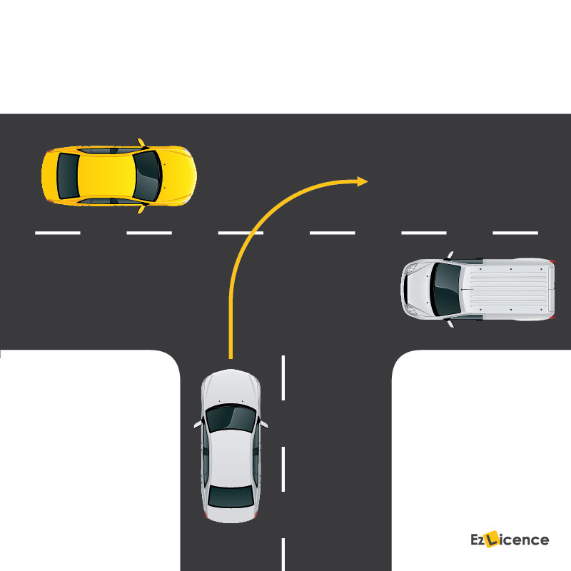 If turning right at a T-intersection (as shown) must you give way to vehicles approaching from both the left and right?