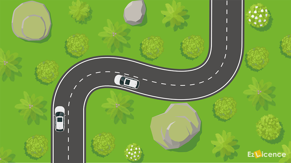You are approaching a hill or curve. You must not cross the centre line to overtake -