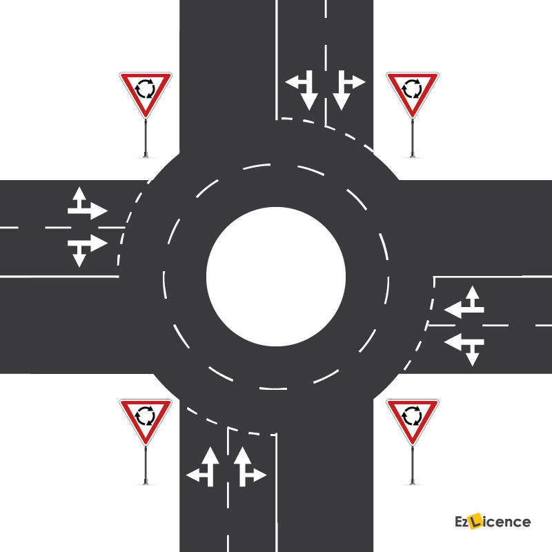 You are driving towards a marked multi-lane roundabout. You want to travel straight through the roundabout to the road opposite. What lane must you take?