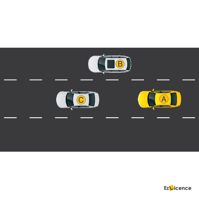 You are driving vehicle A. You want to move to the right hand lane. You must -