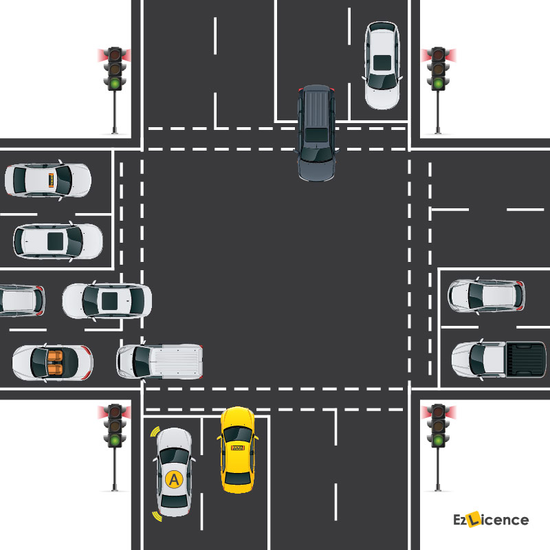 You wish to turn left at an intersection and the traffic lights are green. There are vehicles already in the intersection, what should you do