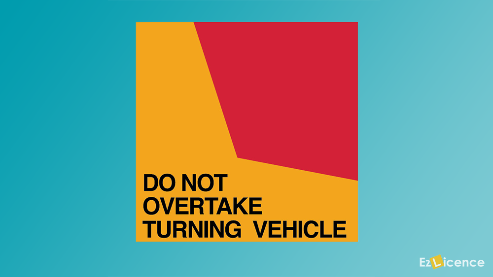 You are behind a long vehicle (7.5 m or more in length) that is signaling and starting to turn left. The truck is displaying a Do not overtake turning vehicle sign and is in the second lane from the left side of the road. You also want to turn left. What must you do?